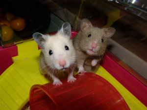 Azt ugyan nem tudom, hogy volt-e már szerelmi beteljesülés Kakaó és Fasírt párkapcsolatában, de tegnap folyamatosan szagolgatták, kerülgették egymást, és határozottan látszott, hogy ez bizony már kezd komolyra fordulni. Én meg, az eredetileg 100%-ig háziállatellenes anyuka, lassan előlépek hivatásos hörcsögtenyésztővé. Éppen azon örvendezek, hogy a picik lassan elérik a 3 hetes kort, és végre tovább lehet őket adni (mert 3 hetes korukig szoptatja őket az anyjuk), erre kezdhetek készülni az újabb gyermekáldásra.